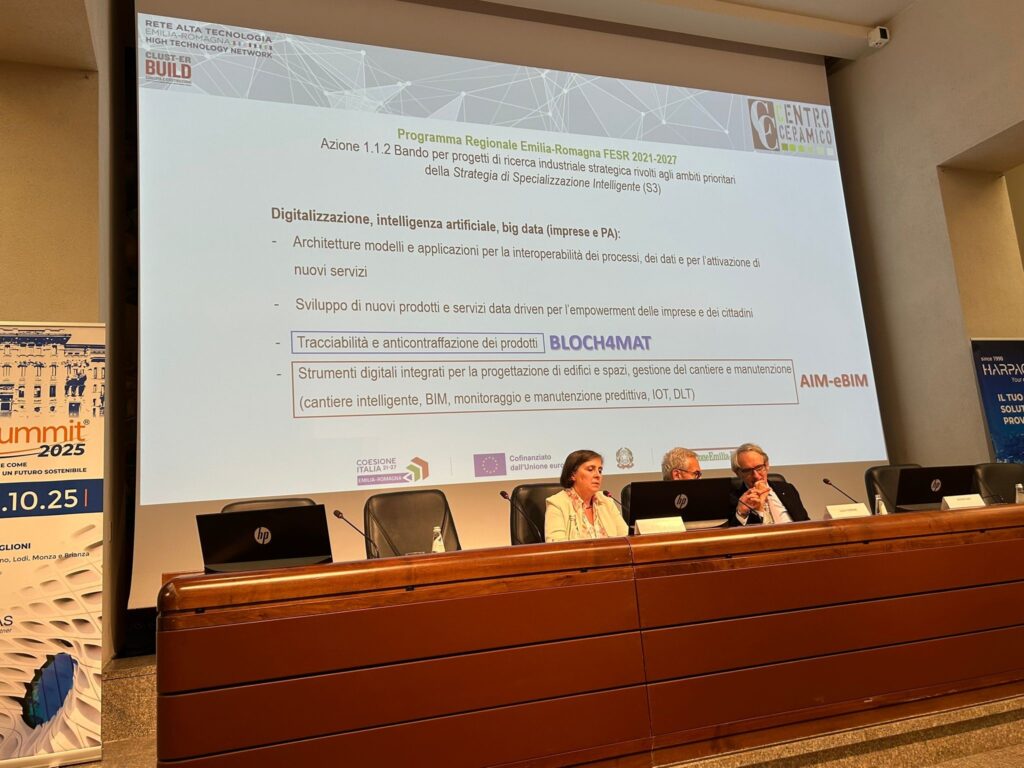 Silvia Rossi ha partecipato al grande evento sulla Transizione Digitale nel settore delle Costruzioni ed ha incontrato Massimo Stefani di Harpaceas Srl ed Elisa Franzoni del CENTRO CERAMICO che ha presentato il progetto supportato da Clust-ER Build: Bloch4mat, integrazione del modello di blockchain nel mondo delle costruzioni, nello specifico quello ceramico d’avanguardia, oltre l’integrazione nel progetto AIM-eBIM.