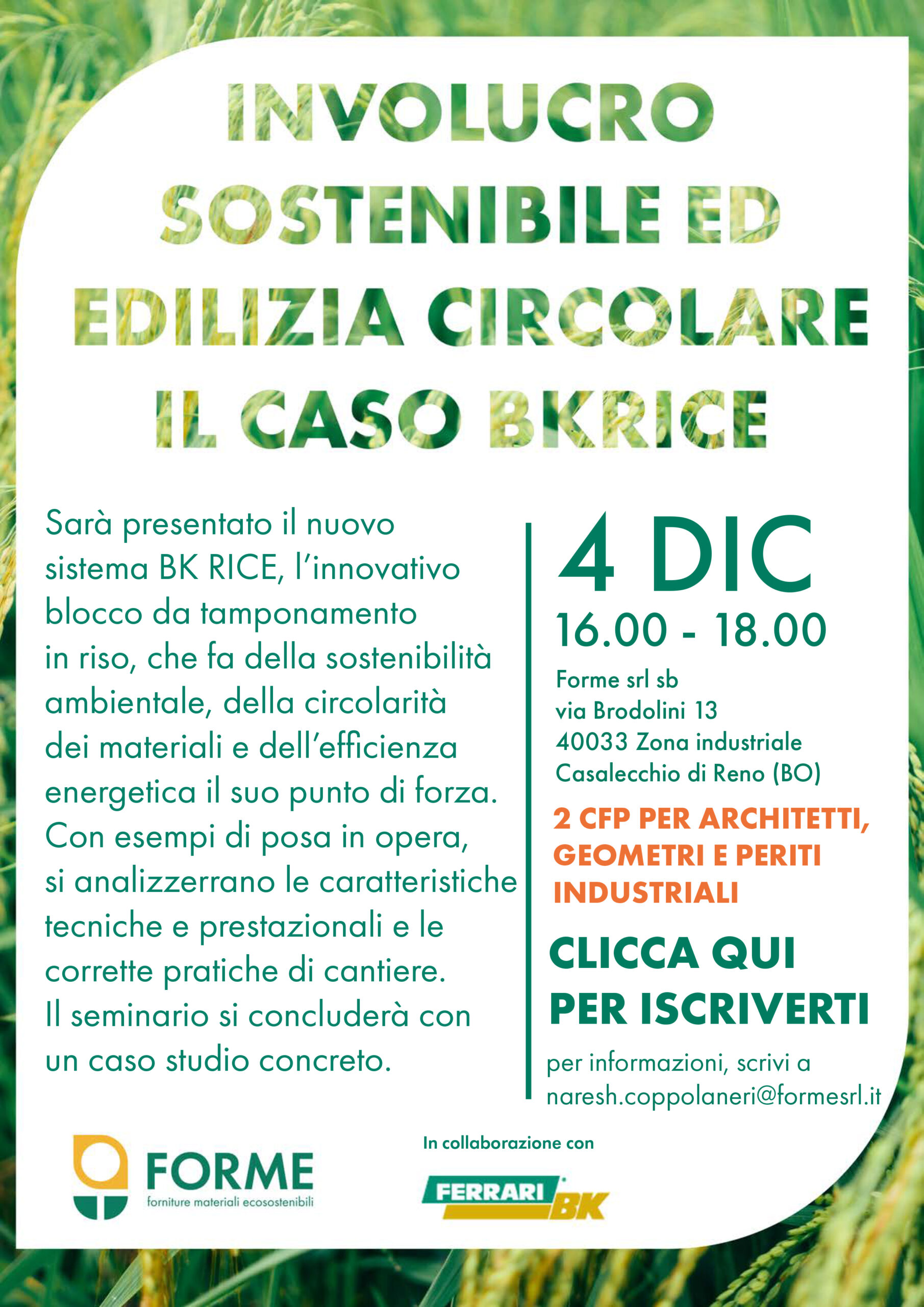 Involucro sostenibile ed edilizia circolare. Il Caso BK RICE